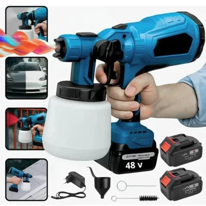 Equipada con una batería de larga duración, nuestra pistola pulverizadora inalámbrica te permite trabajar durante horas sin necesidad de recargar, aumentando tu eficiencia y permitiéndote completar proyectos más grandes en menos tiempo.